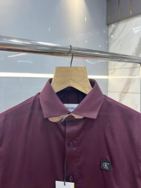 Calvin Klei n Maroon Premium Imported Patch Logo Shirt with custom Branded Button Tagging And Brand Box 3726